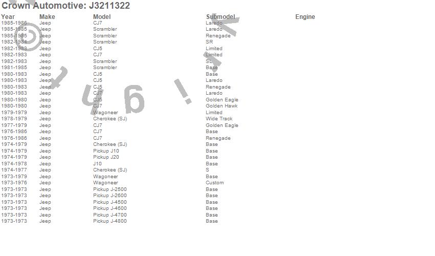 Cherokee (SJ), CJ5, CJ7, J-2500, J-2600, J-4500, J-4600, J-4700, J-4800, J10, J20, Scrambler, Wagoneer, Jeep, 1986, 1985, 1984, 1983, 1982, 1981 more…