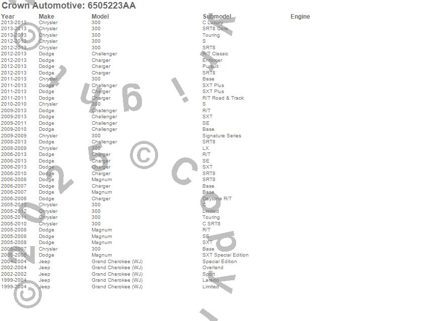 300, Challenger, Charger, Grand Cherokee (WJ), Magnum, Chrysler, Dodge, Jeep, 2013, 2012, 2011, 2010, 2009, 2008, 2007, 2006, 2005, 2004, 2003, 2002 more…
