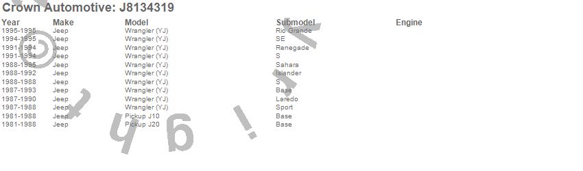J10, J20, Wrangler (YJ), Jeep, 1995, 1994, 1993, 1992, 1991, 1990, 1989, 1988, 1987, 1986, 1985, 1984, 1983, 1982, 1981 more…