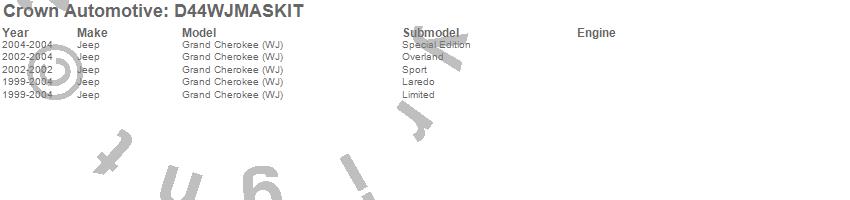 Crown Automotive Differential Master Overhaul Kit D44WJMASKIT Features: