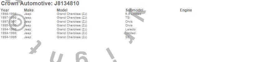 Crown Automotive is the premier manufacturer and distributor of quality replacement parts for Jeep® CJ™, Wrangler™, Cherokee™, Grand Cherokee™, Liberty™, and Commander™."From humble beginnings in 1963 in a small Boston storefront, Crown Automotive has consistently maintained its commitment to offering only quality parts and exceptional service. Today, with warehouses in Massachusetts, Georgia, Nevada, Spain, and the Czech Republic, totaling over 160,000 square feet, Crown Automotive continues to be the leader in quality replacement parts for Jeep® vehicles. With over 8,000 different parts in stock for Jeep® vehicles from 1942 on up, Crown has the largest stock of replacement parts for Jeep® vehicles, including factory-discontinued parts. In fact, many of the older Jeeps are still on (and off) the road thanks to Crown parts. The Crown line consists of axle, body, brake, clutch, cooling, driveline, electrical, engine, exhaust, fuel, steering, suspension, transmission and transfer case components. Crown Automotive also offers an exclusive line of component kits and accessory products. Because we know that Jeeps are driven harder than most other vehicles, we emphasize offering only quality parts. In fact, we test parts on Jeeps before distributing them to our dealers to insure that they meet our standards for quality. Crown also supports its entire line with a 12 month/12,000 mile warranty to insure our dealers and their customers of our commitment to offering quality parts. We know from experience that Jeep® owners would rather pay a little more for a good quality part that's backed by a strong guarantee. But we know that price is important as well. So, not only will you find Crown parts to be of exceptional quality, but you'll find them at a great price too.