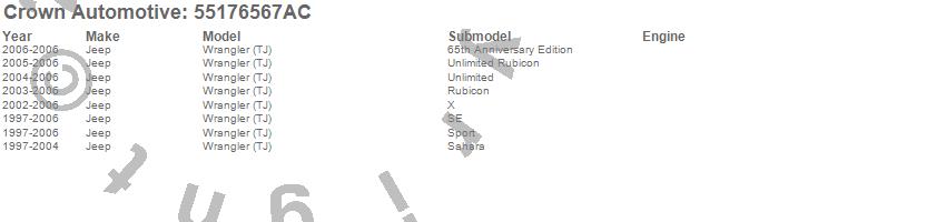 Crown Automotive is the premier manufacturer and distributor of quality replacement parts for Jeep® CJ™, Wrangler™, Cherokee™, Grand Cherokee™, Liberty™, and Commander™."From humble beginnings in 1963 in a small Boston storefront, Crown Automotive has consistently maintained its commitment to offering only quality parts and exceptional service. Today, with warehouses in Massachusetts, Georgia, Nevada, Spain, and the Czech Republic, totaling over 160,000 square feet, Crown Automotive continues to be the leader in quality replacement parts for Jeep® vehicles. With over 8,000 different parts in stock for Jeep® vehicles from 1942 on up, Crown has the largest stock of replacement parts for Jeep® vehicles, including factory-discontinued parts. In fact, many of the older Jeeps are still on (and off) the road thanks to Crown parts. The Crown line consists of axle, body, brake, clutch, cooling, driveline, electrical, engine, exhaust, fuel, steering, suspension, transmission and transfer case components. Crown Automotive also offers an exclusive line of component kits and accessory products. Because we know that Jeeps are driven harder than most other vehicles, we emphasize offering only quality parts. In fact, we test parts on Jeeps before distributing them to our dealers to insure that they meet our standards for quality. Crown also supports its entire line with a 12 month/12,000 mile warranty to insure our dealers and their customers of our commitment to offering quality parts. We know from experience that Jeep® owners would rather pay a little more for a good quality part that's backed by a strong guarantee. But we know that price is important as well. So, not only will you find Crown parts to be of exceptional quality, but you'll find them at a great price too.