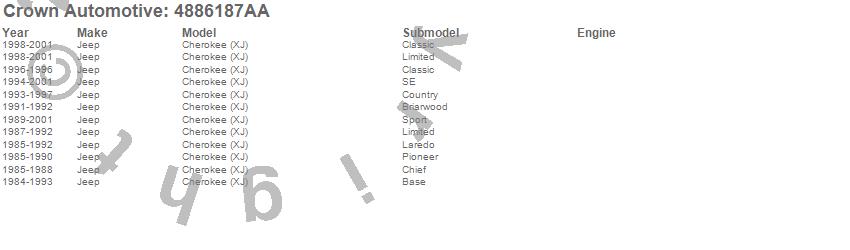 Cherokee (XJ), Jeep, 2001, 2000, 1999, 1998, 1997, 1996, 1995, 1994, 1993, 1992, 1991, 1990, 1989, 1988, 1987, 1986, 1985, 1984 more…