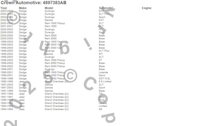 Crown Automotive Intake Manifold Gasket Set 4897383AB Features: