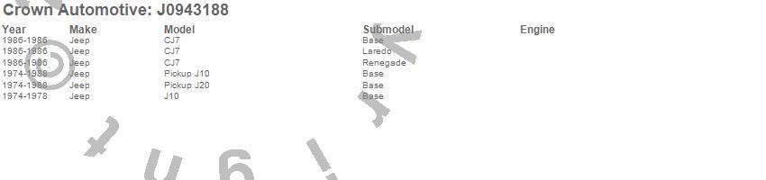 Crown Automotive is the premier manufacturer and distributor of quality replacement parts for Jeep® CJ™, Wrangler™, Cherokee™, Grand Cherokee™, Liberty™, and Commander™."From humble beginnings in 1963 in a small Boston storefront, Crown Automotive has consistently maintained its commitment to offering only quality parts and exceptional service. Today, with warehouses in Massachusetts, Georgia, Nevada, Spain, and the Czech Republic, totaling over 160,000 square feet, Crown Automotive continues to be the leader in quality replacement parts for Jeep® vehicles. With over 8,000 different parts in stock for Jeep® vehicles from 1942 on up, Crown has the largest stock of replacement parts for Jeep® vehicles, including factory-discontinued parts. In fact, many of the older Jeeps are still on (and off) the road thanks to Crown parts. The Crown line consists of axle, body, brake, clutch, cooling, driveline, electrical, engine, exhaust, fuel, steering, suspension, transmission and transfer case components. Crown Automotive also offers an exclusive line of component kits and accessory products. Because we know that Jeeps are driven harder than most other vehicles, we emphasize offering only quality parts. In fact, we test parts on Jeeps before distributing them to our dealers to insure that they meet our standards for quality. Crown also supports its entire line with a 12 month/12,000 mile warranty to insure our dealers and their customers of our commitment to offering quality parts. We know from experience that Jeep® owners would rather pay a little more for a good quality part that's backed by a strong guarantee. But we know that price is important as well. So, not only will you find Crown parts to be of exceptional quality, but you'll find them at a great price too.