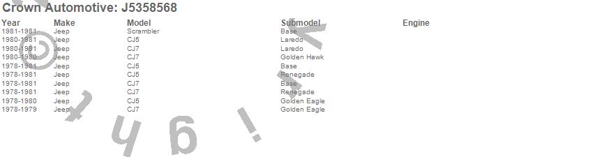 Crown Automotive is the premier manufacturer and distributor of quality replacement parts for Jeep® CJ™, Wrangler™, Cherokee™, Grand Cherokee™, Liberty™, and Commander™."From humble beginnings in 1963 in a small Boston storefront, Crown Automotive has consistently maintained its commitment to offering only quality parts and exceptional service. Today, with warehouses in Massachusetts, Georgia, Nevada, Spain, and the Czech Republic, totaling over 160,000 square feet, Crown Automotive continues to be the leader in quality replacement parts for Jeep® vehicles. With over 8,000 different parts in stock for Jeep® vehicles from 1942 on up, Crown has the largest stock of replacement parts for Jeep® vehicles, including factory-discontinued parts. In fact, many of the older Jeeps are still on (and off) the road thanks to Crown parts. The Crown line consists of axle, body, brake, clutch, cooling, driveline, electrical, engine, exhaust, fuel, steering, suspension, transmission and transfer case components. Crown Automotive also offers an exclusive line of component kits and accessory products. Because we know that Jeeps are driven harder than most other vehicles, we emphasize offering only quality parts. In fact, we test parts on Jeeps before distributing them to our dealers to insure that they meet our standards for quality. Crown also supports its entire line with a 12 month/12,000 mile warranty to insure our dealers and their customers of our commitment to offering quality parts. We know from experience that Jeep® owners would rather pay a little more for a good quality part that's backed by a strong guarantee. But we know that price is important as well. So, not only will you find Crown parts to be of exceptional quality, but you'll find them at a great price too.