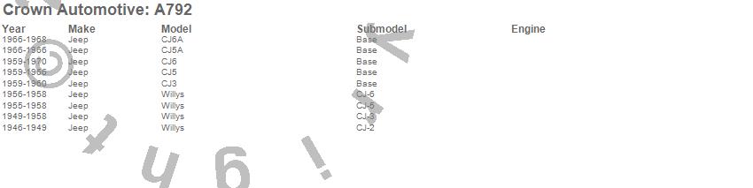 Crown Automotive is the premier manufacturer and distributor of quality replacement parts for Jeep® CJ™, Wrangler™, Cherokee™, Grand Cherokee™, Liberty™, and Commander™."From humble beginnings in 1963 in a small Boston storefront, Crown Automotive has consistently maintained its commitment to offering only quality parts and exceptional service. Today, with warehouses in Massachusetts, Georgia, Nevada, Spain, and the Czech Republic, totaling over 160,000 square feet, Crown Automotive continues to be the leader in quality replacement parts for Jeep® vehicles. With over 8,000 different parts in stock for Jeep® vehicles from 1942 on up, Crown has the largest stock of replacement parts for Jeep® vehicles, including factory-discontinued parts. In fact, many of the older Jeeps are still on (and off) the road thanks to Crown parts. The Crown line consists of axle, body, brake, clutch, cooling, driveline, electrical, engine, exhaust, fuel, steering, suspension, transmission and transfer case components. Crown Automotive also offers an exclusive line of component kits and accessory products. Because we know that Jeeps are driven harder than most other vehicles, we emphasize offering only quality parts. In fact, we test parts on Jeeps before distributing them to our dealers to insure that they meet our standards for quality. Crown also supports its entire line with a 12 month/12,000 mile warranty to insure our dealers and their customers of our commitment to offering quality parts. We know from experience that Jeep® owners would rather pay a little more for a good quality part that's backed by a strong guarantee. But we know that price is important as well. So, not only will you find Crown parts to be of exceptional quality, but you'll find them at a great price too.