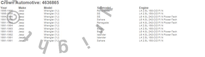 Crown Automotive is the premier manufacturer and distributor of quality replacement parts for Jeep® CJ™, Wrangler™, Cherokee™, Grand Cherokee™, Liberty™, and Commander™."From humble beginnings in 1963 in a small Boston storefront, Crown Automotive has consistently maintained its commitment to offering only quality parts and exceptional service. Today, with warehouses in Massachusetts, Georgia, Nevada, Spain, and the Czech Republic, totaling over 160,000 square feet, Crown Automotive continues to be the leader in quality replacement parts for Jeep® vehicles. With over 8,000 different parts in stock for Jeep® vehicles from 1942 on up, Crown has the largest stock of replacement parts for Jeep® vehicles, including factory-discontinued parts. In fact, many of the older Jeeps are still on (and off) the road thanks to Crown parts. The Crown line consists of axle, body, brake, clutch, cooling, driveline, electrical, engine, exhaust, fuel, steering, suspension, transmission and transfer case components. Crown Automotive also offers an exclusive line of component kits and accessory products. Because we know that Jeeps are driven harder than most other vehicles, we emphasize offering only quality parts. In fact, we test parts on Jeeps before distributing them to our dealers to insure that they meet our standards for quality. Crown also supports its entire line with a 12 month/12,000 mile warranty to insure our dealers and their customers of our commitment to offering quality parts. We know from experience that Jeep® owners would rather pay a little more for a good quality part that's backed by a strong guarantee. But we know that price is important as well. So, not only will you find Crown parts to be of exceptional quality, but you'll find them at a great price too.