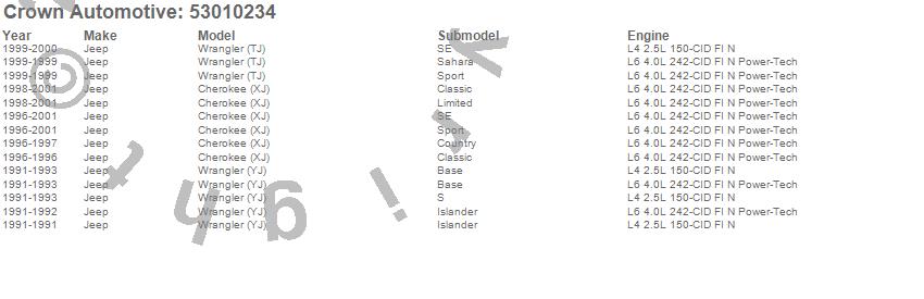 Cherokee (XJ), Wrangler (TJ), Wrangler (YJ), Jeep, 2001, 2000, 1999, 1998, 1997, 1996, 1993, 1992, 1991 more…