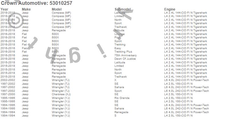 Crown Automotive Serpentine Belt 53010257 Features: