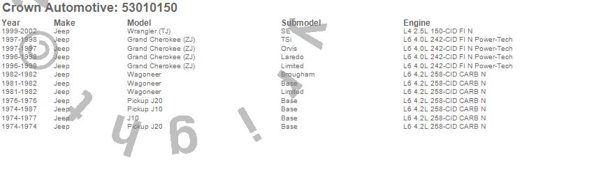 Grand Cherokee (ZJ), J10, J20, Wagoneer, Wrangler (TJ), Jeep, 2002, 2001, 2000, 1999, 1998, 1997, 1996, 1987, 1986, 1985, 1984, 1983, 1982, 1981 more…
