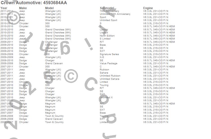 300, Challenger, Charger, Grand Caravan, Grand Cherokee (WK), Magnum, Town & Country, Wrangler (JK), Chrysler, Dodge, Jeep, 2011, 2010, 2009, 2008, 2007, 2006 more…