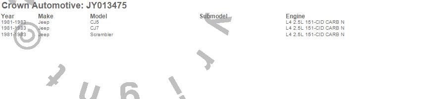 Crown Automotive is the premier manufacturer and distributor of quality replacement parts for Jeep® CJ™, Wrangler™, Cherokee™, Grand Cherokee™, Liberty™, and Commander™."From humble beginnings in 1963 in a small Boston storefront, Crown Automotive has consistently maintained its commitment to offering only quality parts and exceptional service. Today, with warehouses in Massachusetts, Georgia, Nevada, Spain, and the Czech Republic, totaling over 160,000 square feet, Crown Automotive continues to be the leader in quality replacement parts for Jeep® vehicles. With over 8,000 different parts in stock for Jeep® vehicles from 1942 on up, Crown has the largest stock of replacement parts for Jeep® vehicles, including factory-discontinued parts. In fact, many of the older Jeeps are still on (and off) the road thanks to Crown parts. The Crown line consists of axle, body, brake, clutch, cooling, driveline, electrical, engine, exhaust, fuel, steering, suspension, transmission and transfer case components. Crown Automotive also offers an exclusive line of component kits and accessory products. Because we know that Jeeps are driven harder than most other vehicles, we emphasize offering only quality parts. In fact, we test parts on Jeeps before distributing them to our dealers to insure that they meet our standards for quality. Crown also supports its entire line with a 12 month/12,000 mile warranty to insure our dealers and their customers of our commitment to offering quality parts. We know from experience that Jeep® owners would rather pay a little more for a good quality part that's backed by a strong guarantee. But we know that price is important as well. So, not only will you find Crown parts to be of exceptional quality, but you'll find them at a great price too.