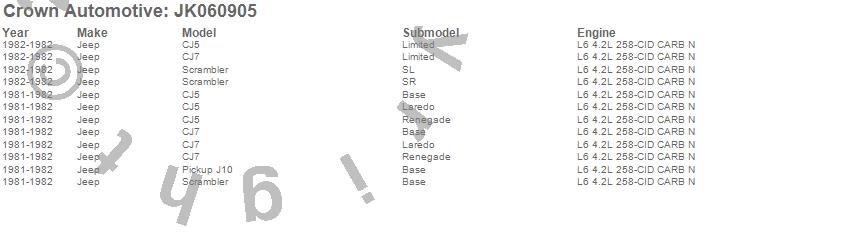 Crown Automotive is the premier manufacturer and distributor of quality replacement parts for Jeep® CJ™, Wrangler™, Cherokee™, Grand Cherokee™, Liberty™, and Commander™."From humble beginnings in 1963 in a small Boston storefront, Crown Automotive has consistently maintained its commitment to offering only quality parts and exceptional service. Today, with warehouses in Massachusetts, Georgia, Nevada, Spain, and the Czech Republic, totaling over 160,000 square feet, Crown Automotive continues to be the leader in quality replacement parts for Jeep® vehicles. With over 8,000 different parts in stock for Jeep® vehicles from 1942 on up, Crown has the largest stock of replacement parts for Jeep® vehicles, including factory-discontinued parts. In fact, many of the older Jeeps are still on (and off) the road thanks to Crown parts. The Crown line consists of axle, body, brake, clutch, cooling, driveline, electrical, engine, exhaust, fuel, steering, suspension, transmission and transfer case components. Crown Automotive also offers an exclusive line of component kits and accessory products. Because we know that Jeeps are driven harder than most other vehicles, we emphasize offering only quality parts. In fact, we test parts on Jeeps before distributing them to our dealers to insure that they meet our standards for quality. Crown also supports its entire line with a 12 month/12,000 mile warranty to insure our dealers and their customers of our commitment to offering quality parts. We know from experience that Jeep® owners would rather pay a little more for a good quality part that's backed by a strong guarantee. But we know that price is important as well. So, not only will you find Crown parts to be of exceptional quality, but you'll find them at a great price too.