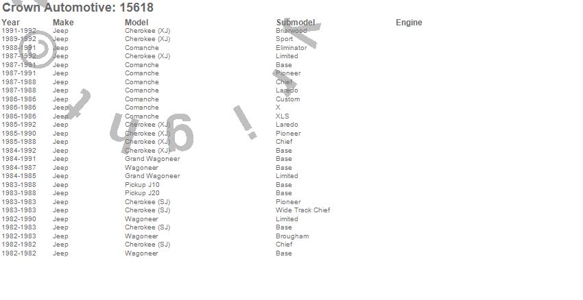 Cherokee (SJ), Cherokee (XJ), Comanche, Grand Wagoneer, J10, J20, Wagoneer, Jeep, 1992, 1991, 1990, 1989, 1988, 1987, 1986, 1985, 1984, 1983, 1982 more…