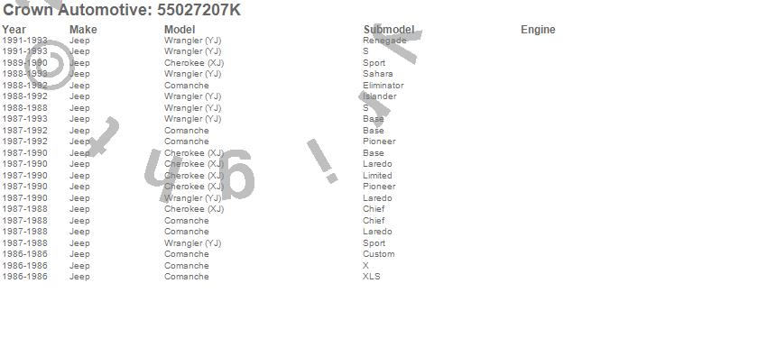 Crown Automotive is the premier manufacturer and distributor of quality replacement parts for Jeep® CJ™, Wrangler™, Cherokee™, Grand Cherokee™, Liberty™, and Commander™."From humble beginnings in 1963 in a small Boston storefront, Crown Automotive has consistently maintained its commitment to offering only quality parts and exceptional service. Today, with warehouses in Massachusetts, Georgia, Nevada, Spain, and the Czech Republic, totaling over 160,000 square feet, Crown Automotive continues to be the leader in quality replacement parts for Jeep® vehicles. With over 8,000 different parts in stock for Jeep® vehicles from 1942 on up, Crown has the largest stock of replacement parts for Jeep® vehicles, including factory-discontinued parts. In fact, many of the older Jeeps are still on (and off) the road thanks to Crown parts. The Crown line consists of axle, body, brake, clutch, cooling, driveline, electrical, engine, exhaust, fuel, steering, suspension, transmission and transfer case components. Crown Automotive also offers an exclusive line of component kits and accessory products. Because we know that Jeeps are driven harder than most other vehicles, we emphasize offering only quality parts. In fact, we test parts on Jeeps before distributing them to our dealers to insure that they meet our standards for quality. Crown also supports its entire line with a 12 month/12,000 mile warranty to insure our dealers and their customers of our commitment to offering quality parts. We know from experience that Jeep® owners would rather pay a little more for a good quality part that's backed by a strong guarantee. But we know that price is important as well. So, not only will you find Crown parts to be of exceptional quality, but you'll find them at a great price too.