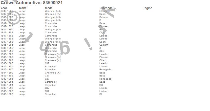 Cherokee (XJ), CJ7, Comanche, Scrambler, Wrangler (YJ), Jeep, 1990, 1989, 1988, 1987, 1986, 1985, 1984, 1983 more…
