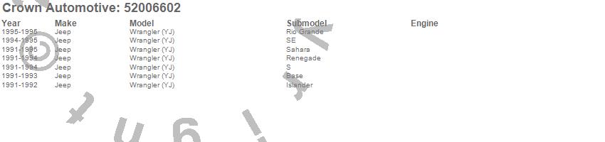 Crown Automotive is the premier manufacturer and distributor of quality replacement parts for Jeep® CJ™, Wrangler™, Cherokee™, Grand Cherokee™, Liberty™, and Commander™."From humble beginnings in 1963 in a small Boston storefront, Crown Automotive has consistently maintained its commitment to offering only quality parts and exceptional service. Today, with warehouses in Massachusetts, Georgia, Nevada, Spain, and the Czech Republic, totaling over 160,000 square feet, Crown Automotive continues to be the leader in quality replacement parts for Jeep® vehicles. With over 8,000 different parts in stock for Jeep® vehicles from 1942 on up, Crown has the largest stock of replacement parts for Jeep® vehicles, including factory-discontinued parts. In fact, many of the older Jeeps are still on (and off) the road thanks to Crown parts. The Crown line consists of axle, body, brake, clutch, cooling, driveline, electrical, engine, exhaust, fuel, steering, suspension, transmission and transfer case components. Crown Automotive also offers an exclusive line of component kits and accessory products. Because we know that Jeeps are driven harder than most other vehicles, we emphasize offering only quality parts. In fact, we test parts on Jeeps before distributing them to our dealers to insure that they meet our standards for quality. Crown also supports its entire line with a 12 month/12,000 mile warranty to insure our dealers and their customers of our commitment to offering quality parts. We know from experience that Jeep® owners would rather pay a little more for a good quality part that's backed by a strong guarantee. But we know that price is important as well. So, not only will you find Crown parts to be of exceptional quality, but you'll find them at a great price too.