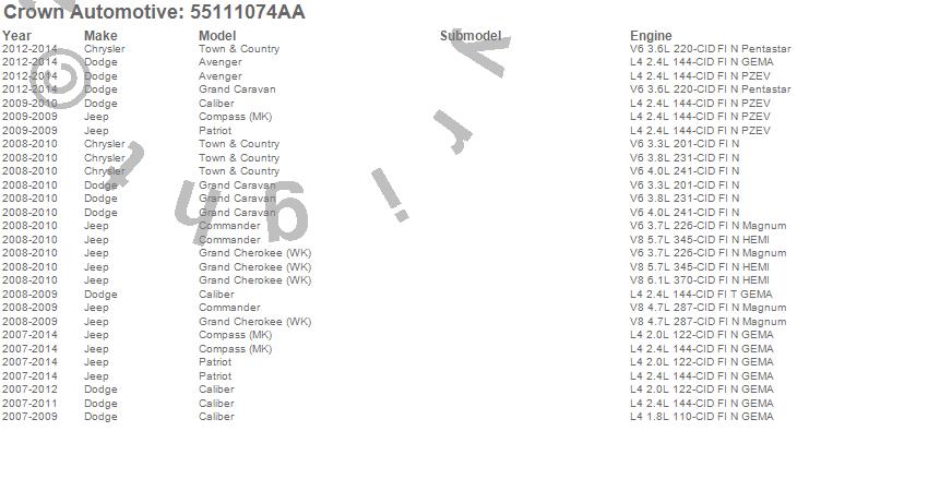 Avenger, Caliber, Caravan, Commander, Compass, Grand Caravan, Grand Cherokee (WK), Patriot, Town & Country, Chrysler, Dodge, Jeep, 2014, 2013, 2012, 2011, 2010, 2009, 2008, 2007 more…