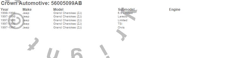 Crown Automotive Parking/Turn Signal Lamp 56005099AB Features: