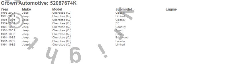 Cherokee (XJ), Jeep, 2001, 2000, 1999, 1998, 1997, 1996, 1995, 1994, 1993, 1992, 1991 more…