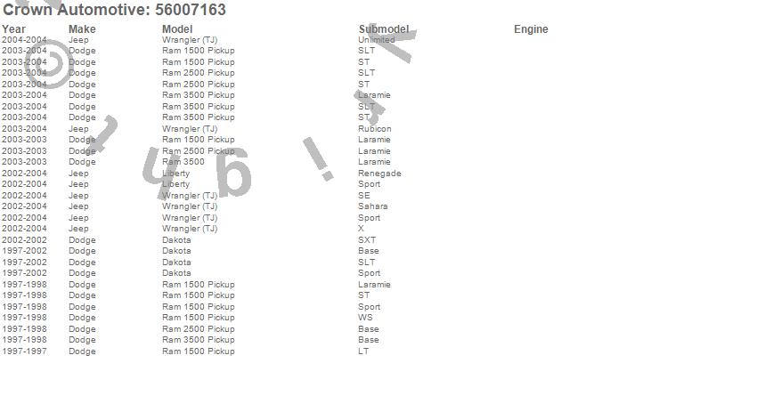 Dakota, Liberty, Ram 1500, Ram 2500, Ram 3500, Wrangler (LJ), Wrangler (TJ), Dodge, Jeep, 2004, 2003, 2002, 2001, 2000, 1999, 1998, 1997 more…
