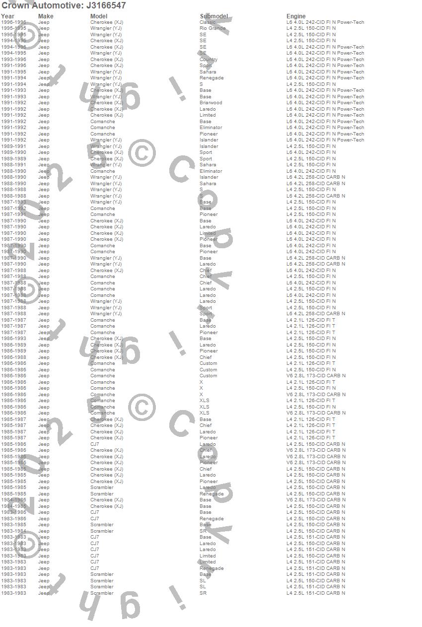 Cherokee (XJ), CJ7, Comanche, Scrambler, Wrangler (YJ), Jeep, 1996, 1995, 1994, 1993, 1992, 1991, 1990, 1989, 1988, 1987, 1986, 1985, 1984, 1983 more…