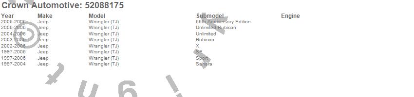 Crown Automotive is the premier manufacturer and distributor of quality replacement parts for Jeep® CJ™, Wrangler™, Cherokee™, Grand Cherokee™, Liberty™, and Commander™."From humble beginnings in 1963 in a small Boston storefront, Crown Automotive has consistently maintained its commitment to offering only quality parts and exceptional service. Today, with warehouses in Massachusetts, Georgia, Nevada, Spain, and the Czech Republic, totaling over 160,000 square feet, Crown Automotive continues to be the leader in quality replacement parts for Jeep® vehicles. With over 8,000 different parts in stock for Jeep® vehicles from 1942 on up, Crown has the largest stock of replacement parts for Jeep® vehicles, including factory-discontinued parts. In fact, many of the older Jeeps are still on (and off) the road thanks to Crown parts. The Crown line consists of axle, body, brake, clutch, cooling, driveline, electrical, engine, exhaust, fuel, steering, suspension, transmission and transfer case components. Crown Automotive also offers an exclusive line of component kits and accessory products. Because we know that Jeeps are driven harder than most other vehicles, we emphasize offering only quality parts. In fact, we test parts on Jeeps before distributing them to our dealers to insure that they meet our standards for quality. Crown also supports its entire line with a 12 month/12,000 mile warranty to insure our dealers and their customers of our commitment to offering quality parts. We know from experience that Jeep® owners would rather pay a little more for a good quality part that's backed by a strong guarantee. But we know that price is important as well. So, not only will you find Crown parts to be of exceptional quality, but you'll find them at a great price too.