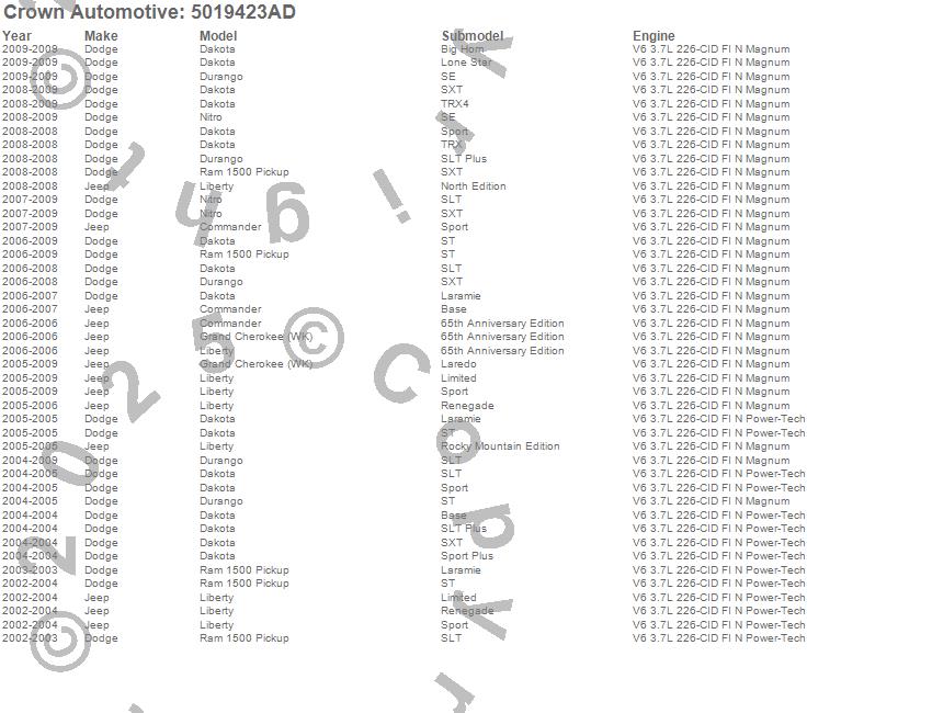Commander, Dakota, Durango, Grand Cherokee (WK), Liberty, Nitro, Ram 1500, Dodge, Jeep, 2009, 2008, 2007, 2006, 2005, 2004, 2003, 2002 more…