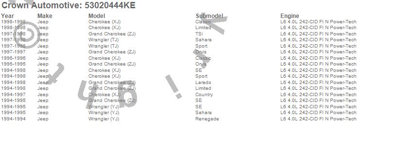 Crown Automotive is the premier manufacturer and distributor of quality replacement parts for Jeep® CJ™, Wrangler™, Cherokee™, Grand Cherokee™, Liberty™, and Commander™."From humble beginnings in 1963 in a small Boston storefront, Crown Automotive has consistently maintained its commitment to offering only quality parts and exceptional service. Today, with warehouses in Massachusetts, Georgia, Nevada, Spain, and the Czech Republic, totaling over 160,000 square feet, Crown Automotive continues to be the leader in quality replacement parts for Jeep® vehicles. With over 8,000 different parts in stock for Jeep® vehicles from 1942 on up, Crown has the largest stock of replacement parts for Jeep® vehicles, including factory-discontinued parts. In fact, many of the older Jeeps are still on (and off) the road thanks to Crown parts. The Crown line consists of axle, body, brake, clutch, cooling, driveline, electrical, engine, exhaust, fuel, steering, suspension, transmission and transfer case components. Crown Automotive also offers an exclusive line of component kits and accessory products. Because we know that Jeeps are driven harder than most other vehicles, we emphasize offering only quality parts. In fact, we test parts on Jeeps before distributing them to our dealers to insure that they meet our standards for quality. Crown also supports its entire line with a 12 month/12,000 mile warranty to insure our dealers and their customers of our commitment to offering quality parts. We know from experience that Jeep® owners would rather pay a little more for a good quality part that's backed by a strong guarantee. But we know that price is important as well. So, not only will you find Crown parts to be of exceptional quality, but you'll find them at a great price too.