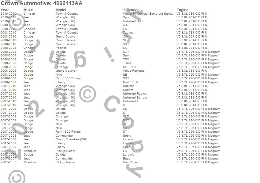 Caravan, Commander, Dakota, Durango, Grand Caravan, Grand Cherokee (WK), Liberty, Nitro, Pacifica, Raider, Ram 1500, Town & Country, Wrangler (JK), Chrysler, Dodge, Jeep, Mitsubishi, 2010, 2009, 2008 more…