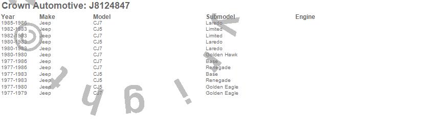 Crown Automotive is the premier manufacturer and distributor of quality replacement parts for Jeep® CJ™, Wrangler™, Cherokee™, Grand Cherokee™, Liberty™, and Commander™."From humble beginnings in 1963 in a small Boston storefront, Crown Automotive has consistently maintained its commitment to offering only quality parts and exceptional service. Today, with warehouses in Massachusetts, Georgia, Nevada, Spain, and the Czech Republic, totaling over 160,000 square feet, Crown Automotive continues to be the leader in quality replacement parts for Jeep® vehicles. With over 8,000 different parts in stock for Jeep® vehicles from 1942 on up, Crown has the largest stock of replacement parts for Jeep® vehicles, including factory-discontinued parts. In fact, many of the older Jeeps are still on (and off) the road thanks to Crown parts. The Crown line consists of axle, body, brake, clutch, cooling, driveline, electrical, engine, exhaust, fuel, steering, suspension, transmission and transfer case components. Crown Automotive also offers an exclusive line of component kits and accessory products. Because we know that Jeeps are driven harder than most other vehicles, we emphasize offering only quality parts. In fact, we test parts on Jeeps before distributing them to our dealers to insure that they meet our standards for quality. Crown also supports its entire line with a 12 month/12,000 mile warranty to insure our dealers and their customers of our commitment to offering quality parts. We know from experience that Jeep® owners would rather pay a little more for a good quality part that's backed by a strong guarantee. But we know that price is important as well. So, not only will you find Crown parts to be of exceptional quality, but you'll find them at a great price too.