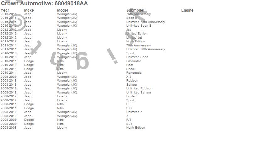 Liberty, Nitro, Wrangler (JK), Dodge, Jeep, 2015, 2014, 2013, 2012, 2011, 2010, 2009, 2008 more…