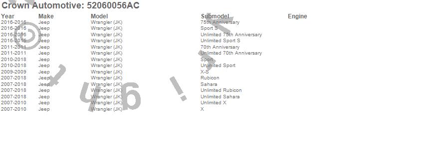 Crown Automotive is the premier manufacturer and distributor of quality replacement parts for Jeep® CJ™, Wrangler™, Cherokee™, Grand Cherokee™, Liberty™, and Commander™."From humble beginnings in 1963 in a small Boston storefront, Crown Automotive has consistently maintained its commitment to offering only quality parts and exceptional service. Today, with warehouses in Massachusetts, Georgia, Nevada, Spain, and the Czech Republic, totaling over 160,000 square feet, Crown Automotive continues to be the leader in quality replacement parts for Jeep® vehicles. With over 8,000 different parts in stock for Jeep® vehicles from 1942 on up, Crown has the largest stock of replacement parts for Jeep® vehicles, including factory-discontinued parts. In fact, many of the older Jeeps are still on (and off) the road thanks to Crown parts. The Crown line consists of axle, body, brake, clutch, cooling, driveline, electrical, engine, exhaust, fuel, steering, suspension, transmission and transfer case components. Crown Automotive also offers an exclusive line of component kits and accessory products. Because we know that Jeeps are driven harder than most other vehicles, we emphasize offering only quality parts. In fact, we test parts on Jeeps before distributing them to our dealers to insure that they meet our standards for quality. Crown also supports its entire line with a 12 month/12,000 mile warranty to insure our dealers and their customers of our commitment to offering quality parts. We know from experience that Jeep® owners would rather pay a little more for a good quality part that's backed by a strong guarantee. But we know that price is important as well. So, not only will you find Crown parts to be of exceptional quality, but you'll find them at a great price too.