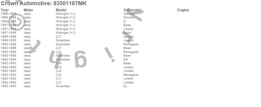 CJ5, CJ7, Scrambler, Wrangler (YJ), Jeep, 1989, 1988, 1987, 1986, 1985, 1984, 1983, 1982 more…