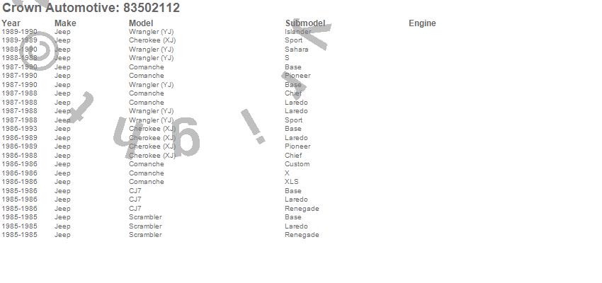 Cherokee (XJ), CJ7, Comanche, Scrambler, Wrangler (YJ), Jeep, 1993, 1992, 1991, 1990, 1989, 1988, 1987, 1986, 1985 more…