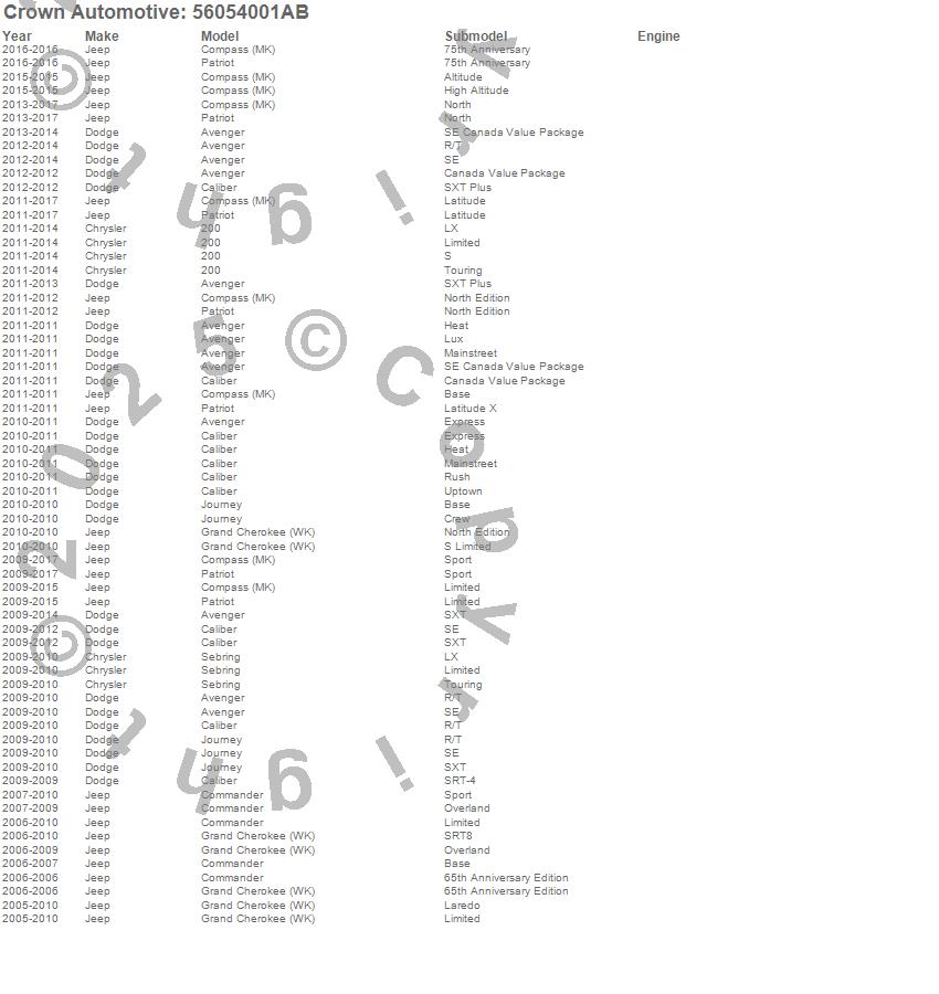 200, Avenger, Caliber, Commander, Compass, Grand Cherokee (WK), Journey, Patriot, Sebring, Chrysler, Dodge, Jeep, 2015, 2014, 2013, 2012, 2011, 2010, 2009, 2008 more…