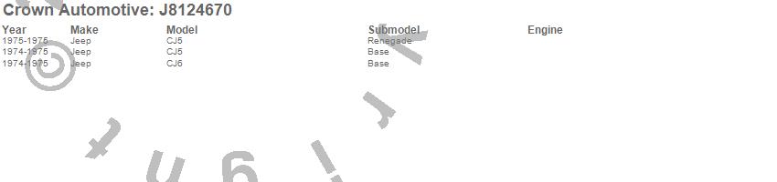 Crown Automotive is the premier manufacturer and distributor of quality replacement parts for Jeep® CJ™, Wrangler™, Cherokee™, Grand Cherokee™, Liberty™, and Commander™."From humble beginnings in 1963 in a small Boston storefront, Crown Automotive has consistently maintained its commitment to offering only quality parts and exceptional service. Today, with warehouses in Massachusetts, Georgia, Nevada, Spain, and the Czech Republic, totaling over 160,000 square feet, Crown Automotive continues to be the leader in quality replacement parts for Jeep® vehicles. With over 8,000 different parts in stock for Jeep® vehicles from 1942 on up, Crown has the largest stock of replacement parts for Jeep® vehicles, including factory-discontinued parts. In fact, many of the older Jeeps are still on (and off) the road thanks to Crown parts. The Crown line consists of axle, body, brake, clutch, cooling, driveline, electrical, engine, exhaust, fuel, steering, suspension, transmission and transfer case components. Crown Automotive also offers an exclusive line of component kits and accessory products. Because we know that Jeeps are driven harder than most other vehicles, we emphasize offering only quality parts. In fact, we test parts on Jeeps before distributing them to our dealers to insure that they meet our standards for quality. Crown also supports its entire line with a 12 month/12,000 mile warranty to insure our dealers and their customers of our commitment to offering quality parts. We know from experience that Jeep® owners would rather pay a little more for a good quality part that's backed by a strong guarantee. But we know that price is important as well. So, not only will you find Crown parts to be of exceptional quality, but you'll find them at a great price too.