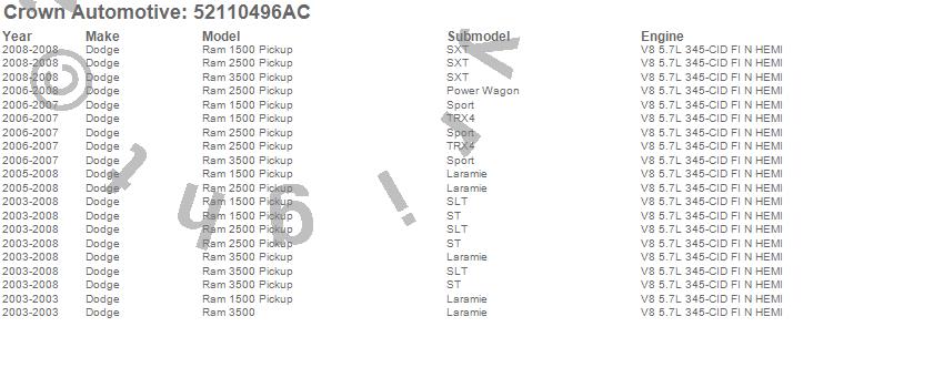Ram 1500, Ram 2500, Ram 3500, Dodge, 2008, 2007, 2006, 2005, 2004, 2003 more…