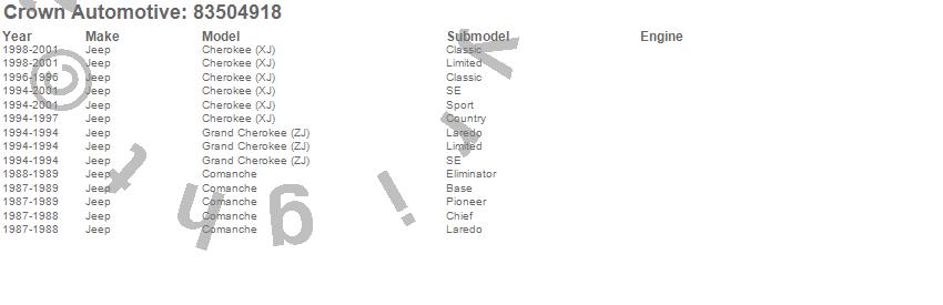 Cherokee (XJ), Comanche, Grand Cherokee (ZJ), Jeep, 2001, 2000, 1999, 1998, 1997, 1996, 1995, 1994, 1989, 1988, 1987 more…