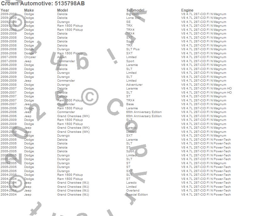Aspen, Commander, Dakota, Durango, Grand Cherokee (WJ), Grand Cherokee (WK), Ram 1500, Chrysler, Dodge, Jeep, 2009, 2008, 2007, 2006, 2005, 2004 more…