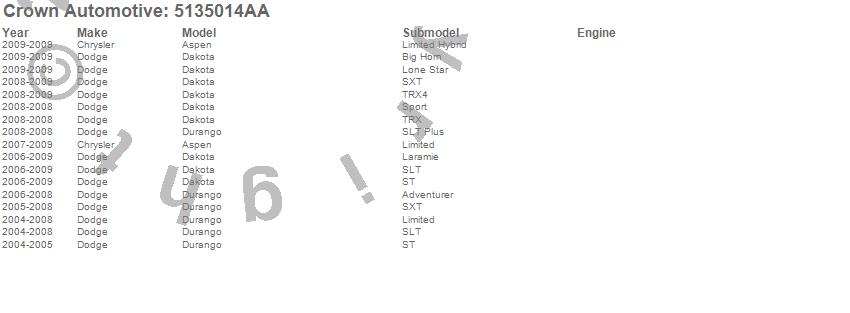 Aspen, Dakota, Durango, Chrysler, Dodge, 2009, 2008, 2007, 2006, 2005, 2004 more…