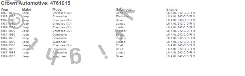 Crown Automotive is the premier manufacturer and distributor of quality replacement parts for Jeep® CJ™, Wrangler™, Cherokee™, Grand Cherokee™, Liberty™, and Commander™."From humble beginnings in 1963 in a small Boston storefront, Crown Automotive has consistently maintained its commitment to offering only quality parts and exceptional service. Today, with warehouses in Massachusetts, Georgia, Nevada, Spain, and the Czech Republic, totaling over 160,000 square feet, Crown Automotive continues to be the leader in quality replacement parts for Jeep® vehicles. With over 8,000 different parts in stock for Jeep® vehicles from 1942 on up, Crown has the largest stock of replacement parts for Jeep® vehicles, including factory-discontinued parts. In fact, many of the older Jeeps are still on (and off) the road thanks to Crown parts. The Crown line consists of axle, body, brake, clutch, cooling, driveline, electrical, engine, exhaust, fuel, steering, suspension, transmission and transfer case components. Crown Automotive also offers an exclusive line of component kits and accessory products. Because we know that Jeeps are driven harder than most other vehicles, we emphasize offering only quality parts. In fact, we test parts on Jeeps before distributing them to our dealers to insure that they meet our standards for quality. Crown also supports its entire line with a 12 month/12,000 mile warranty to insure our dealers and their customers of our commitment to offering quality parts. We know from experience that Jeep® owners would rather pay a little more for a good quality part that's backed by a strong guarantee. But we know that price is important as well. So, not only will you find Crown parts to be of exceptional quality, but you'll find them at a great price too.