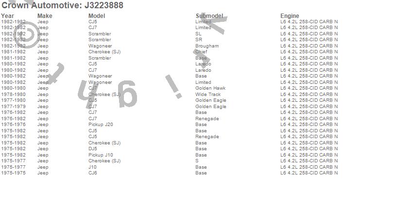 Cherokee (SJ), CJ5, CJ6, CJ7, DJ5, DJ5F, J10, J20, Scrambler, Wagoneer, Jeep, 1982, 1981, 1980, 1979, 1978, 1977, 1976, 1975 more…
