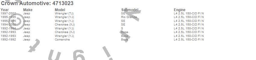Crown Automotive is the premier manufacturer and distributor of quality replacement parts for Jeep® CJ™, Wrangler™, Cherokee™, Grand Cherokee™, Liberty™, and Commander™."From humble beginnings in 1963 in a small Boston storefront, Crown Automotive has consistently maintained its commitment to offering only quality parts and exceptional service. Today, with warehouses in Massachusetts, Georgia, Nevada, Spain, and the Czech Republic, totaling over 160,000 square feet, Crown Automotive continues to be the leader in quality replacement parts for Jeep® vehicles. With over 8,000 different parts in stock for Jeep® vehicles from 1942 on up, Crown has the largest stock of replacement parts for Jeep® vehicles, including factory-discontinued parts. In fact, many of the older Jeeps are still on (and off) the road thanks to Crown parts. The Crown line consists of axle, body, brake, clutch, cooling, driveline, electrical, engine, exhaust, fuel, steering, suspension, transmission and transfer case components. Crown Automotive also offers an exclusive line of component kits and accessory products. Because we know that Jeeps are driven harder than most other vehicles, we emphasize offering only quality parts. In fact, we test parts on Jeeps before distributing them to our dealers to insure that they meet our standards for quality. Crown also supports its entire line with a 12 month/12,000 mile warranty to insure our dealers and their customers of our commitment to offering quality parts. We know from experience that Jeep® owners would rather pay a little more for a good quality part that's backed by a strong guarantee. But we know that price is important as well. So, not only will you find Crown parts to be of exceptional quality, but you'll find them at a great price too.