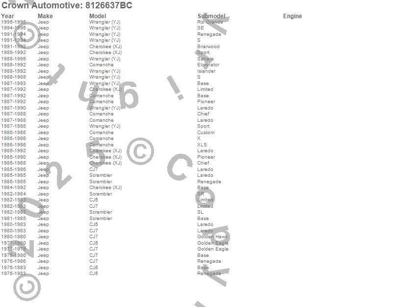 Cherokee (XJ), CJ5, CJ7, Comanche, Scrambler, Wrangler (YJ), Jeep, 1995, 1994, 1993, 1992, 1991, 1990, 1989, 1988, 1987, 1986, 1985, 1984, 1983 more…
