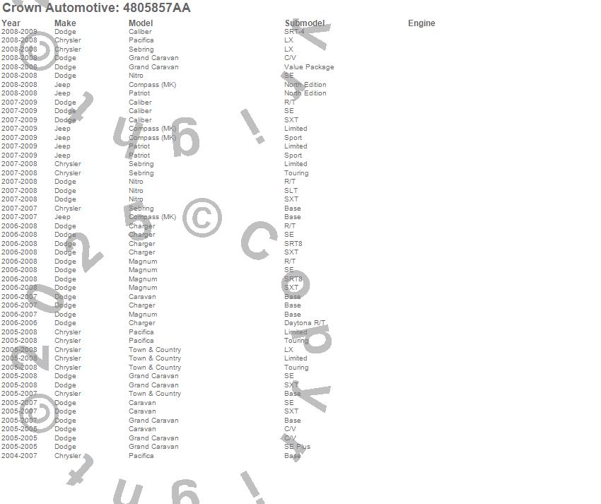 Caliber, Caravan, Charger, Compass, Grand Caravan, Magnum, Nitro, Pacifica, Patriot, Sebring, Town & Country, Chrysler, Dodge, Jeep, 2009, 2008, 2007, 2006, 2005, 2004 more…