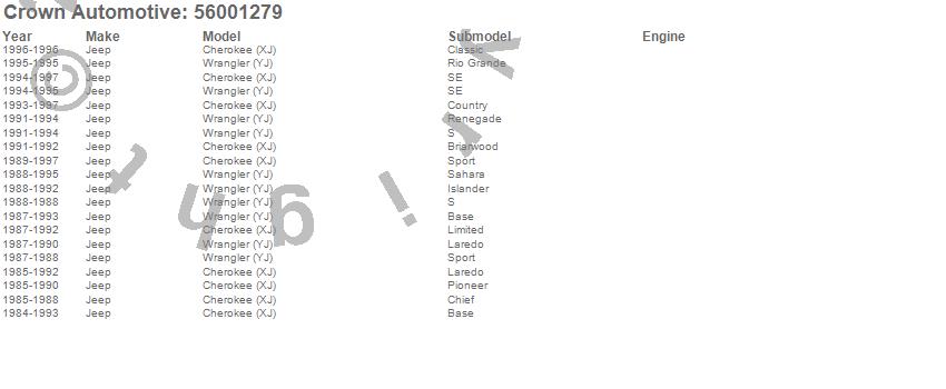 Cherokee (XJ), Wrangler (YJ), Jeep, 1997, 1996, 1995, 1994, 1993, 1992, 1991, 1990, 1989, 1988, 1987, 1986, 1985, 1984 more…