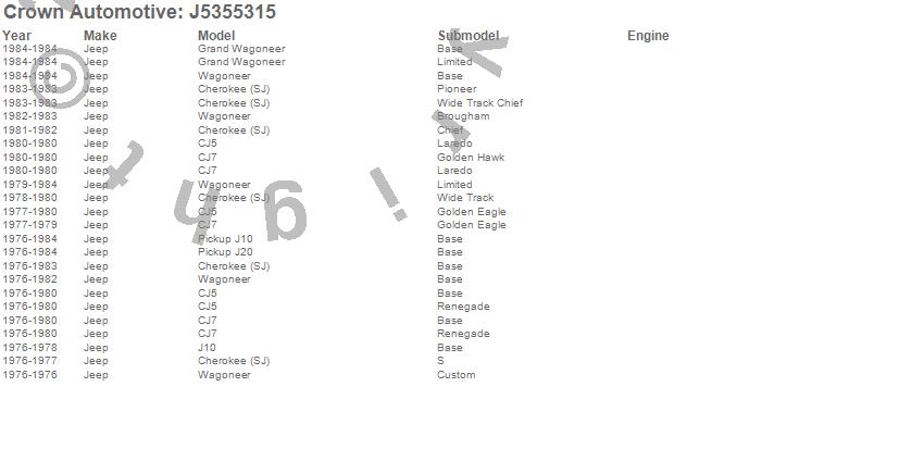 Cherokee (SJ), CJ5, CJ7, Grand Wagoneer, J10, J20, Wagoneer, Jeep, 1984, 1983, 1982, 1981, 1980, 1979, 1978, 1977, 1976 more…