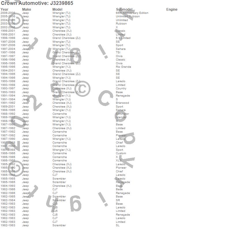 Cherokee (XJ), CJ5, CJ7, Comanche, Grand Cherokee (ZJ), Scrambler, Wrangler (LJ), Wrangler (TJ), Wrangler (YJ), Jeep, 2006, 2005, 2004, 2003, 2002, 2001, 2000, 1999, 1998, 1997 more…